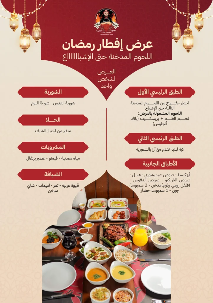 Eyad special mix of spices and somoked for 12 to 14hrs served with 4 Kind of sauce plus, Variety of Salads & Appetizers Rice.